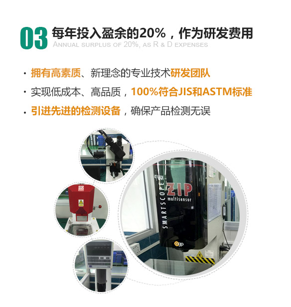 通过ISO质量管理体系标准,100%符合日本工业(JIS)和美国材料学会标准(ASTM)